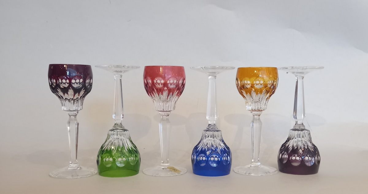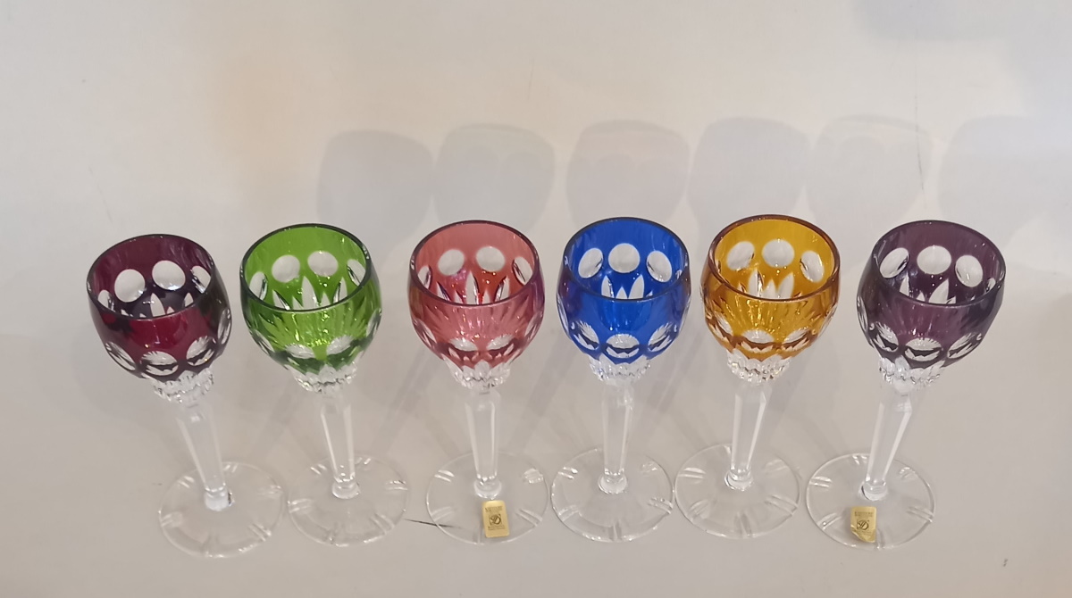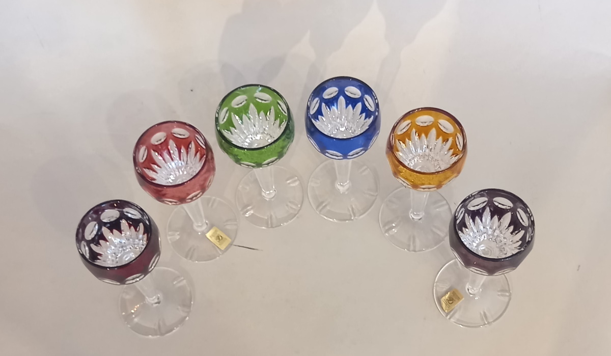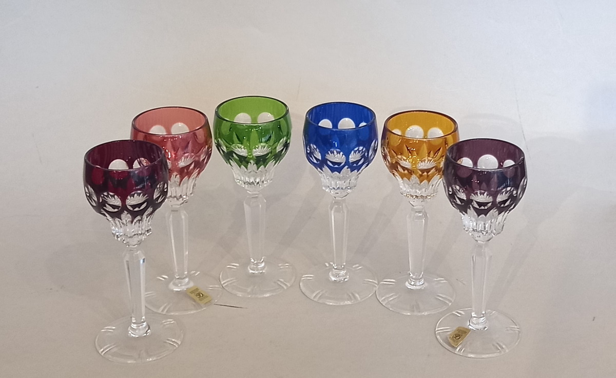 6 Stück hochwertige Überfang Likörgläser/ Römer Weingläser Bleikristall von