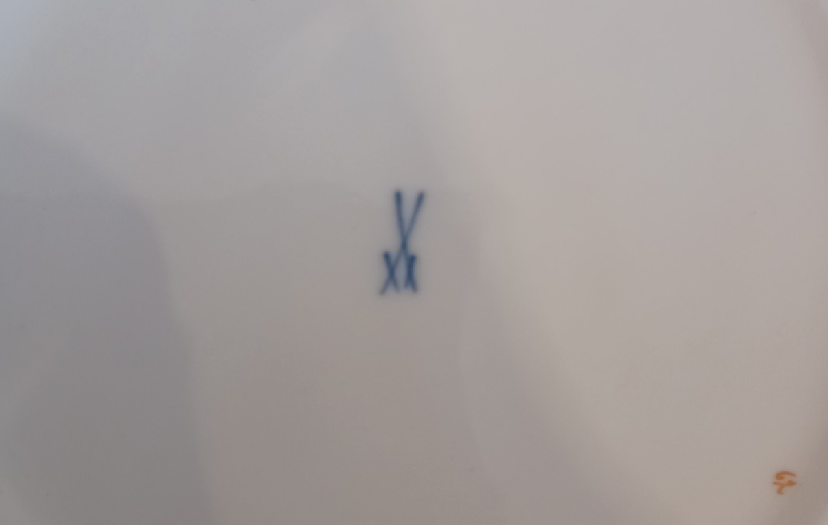 gepunzt Halbmond Krone. Unterglasur blaue Schwertmarke.