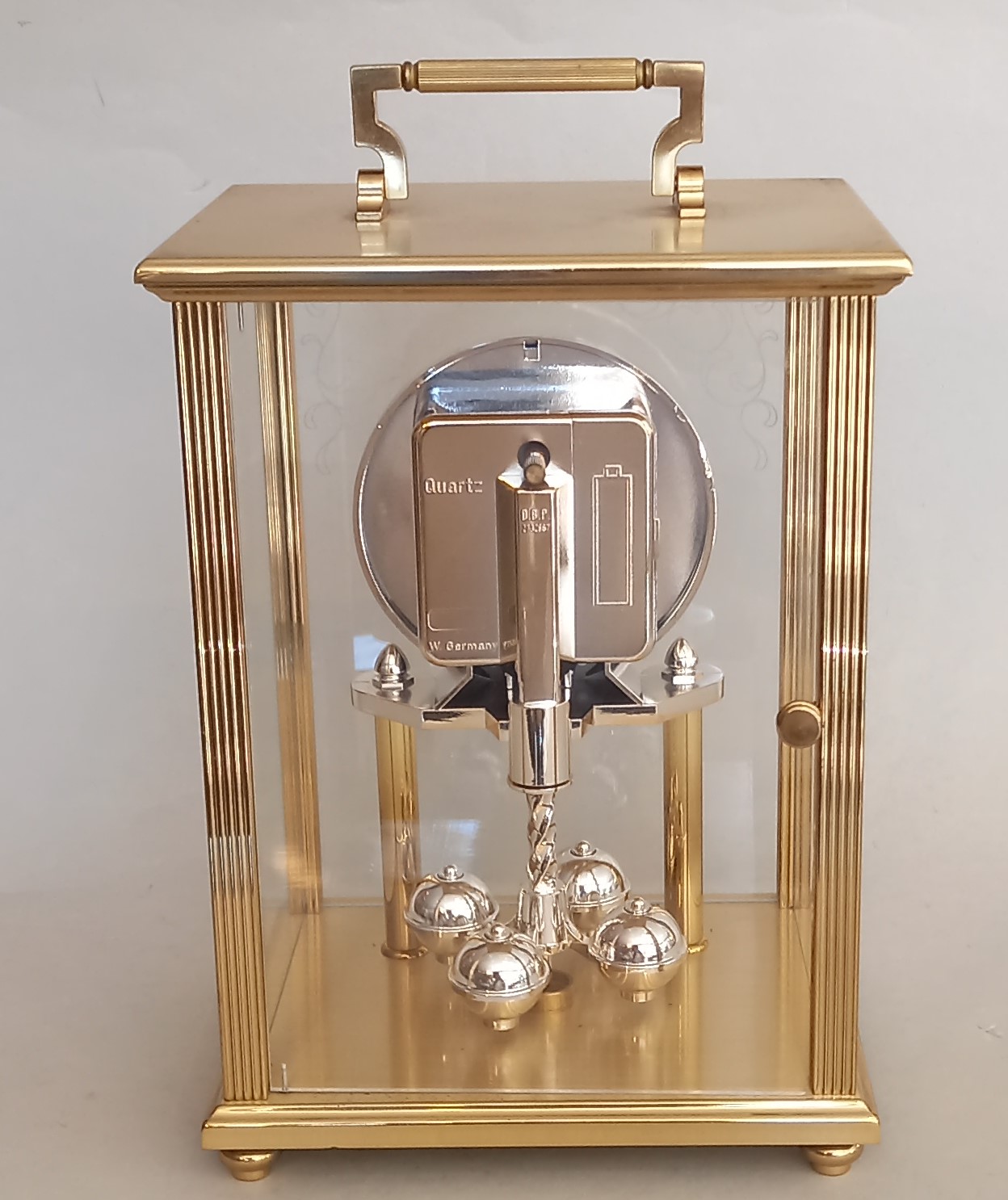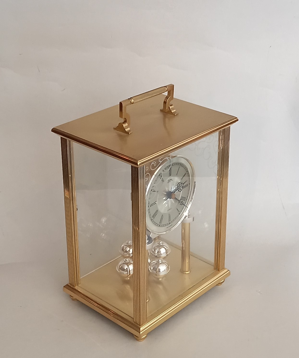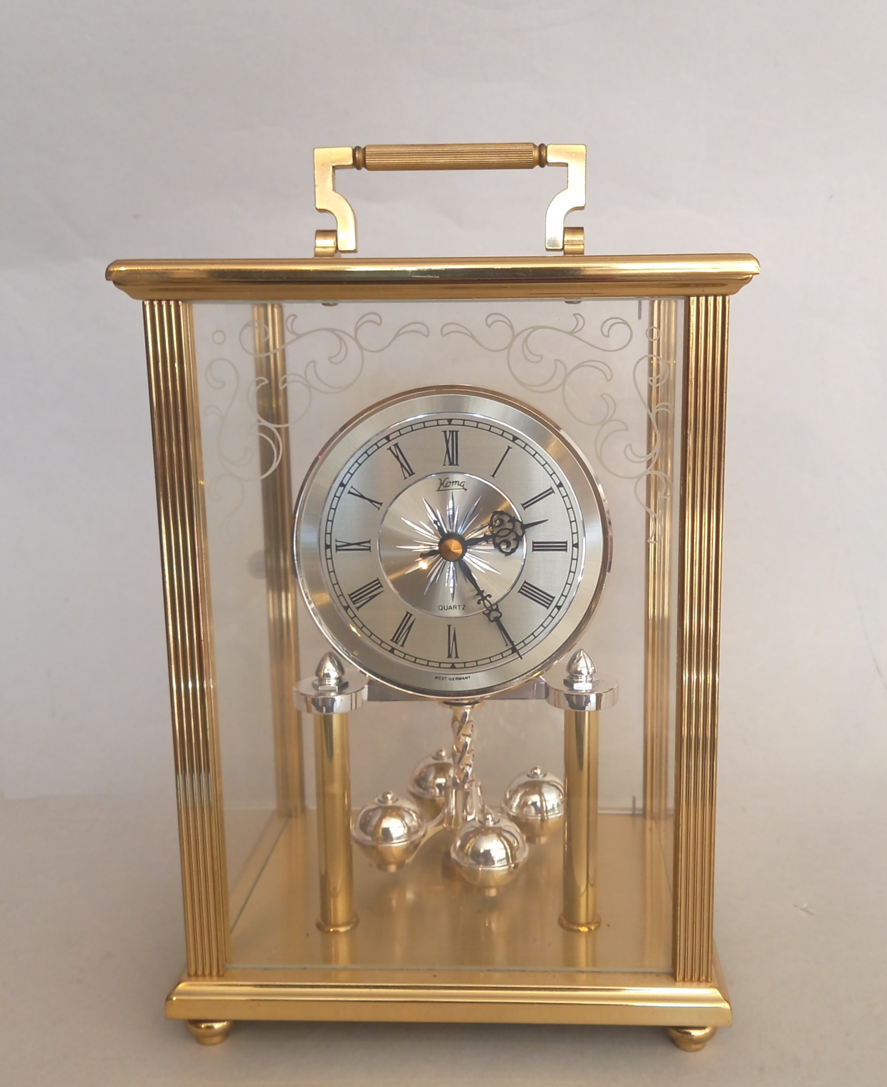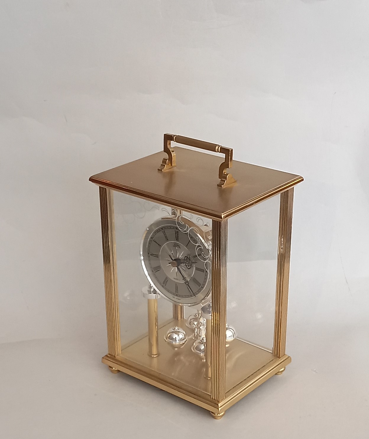 Drehpendeluhr / Kaminuhr mit Messinggehäuse und Mineralglas, Hersteller Koma,