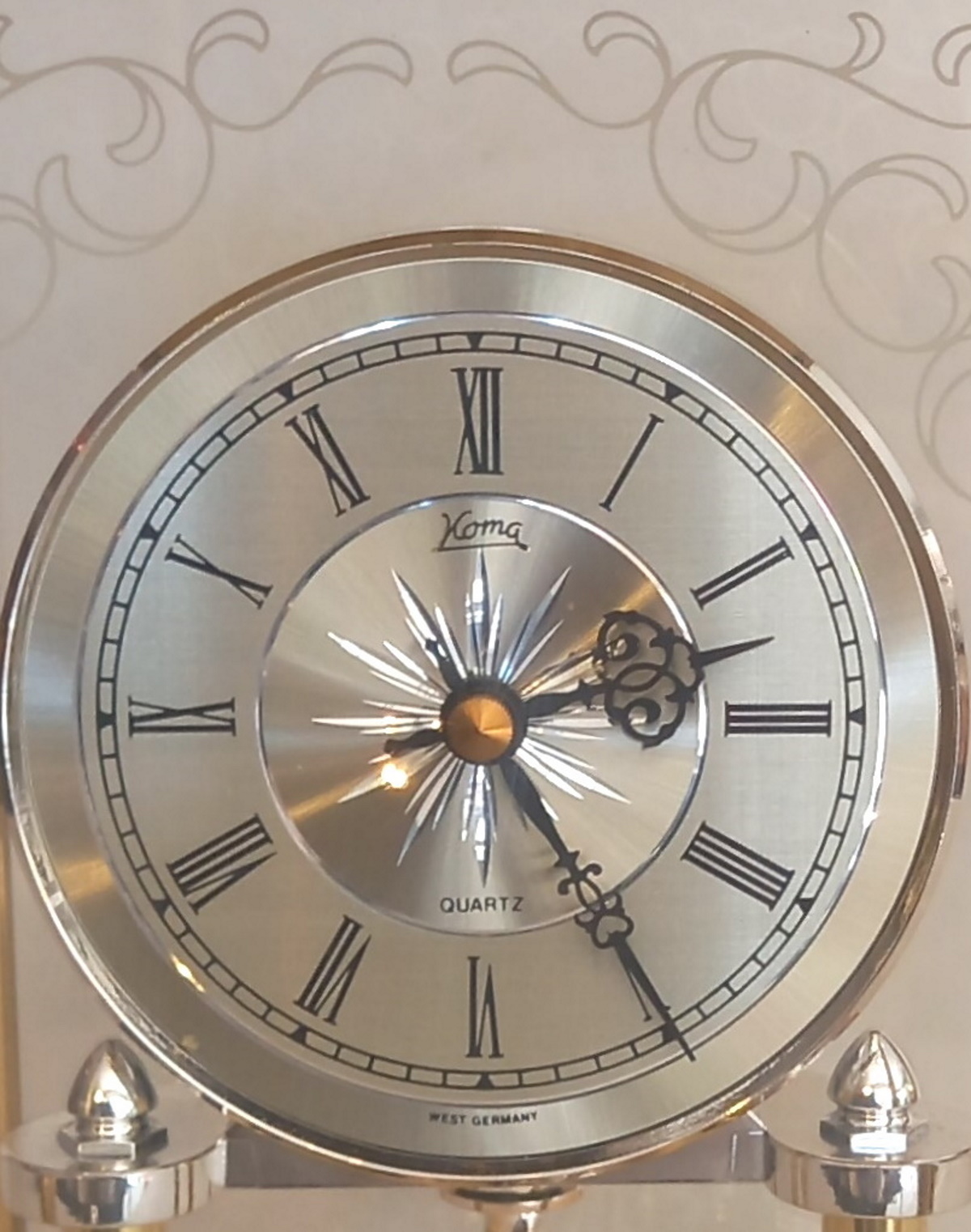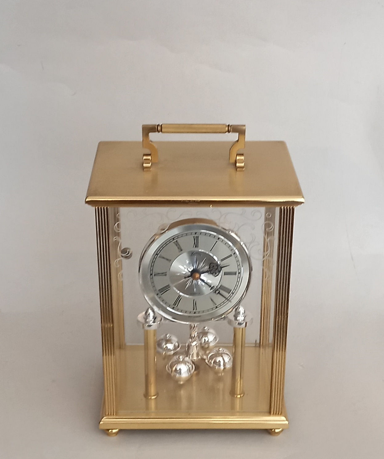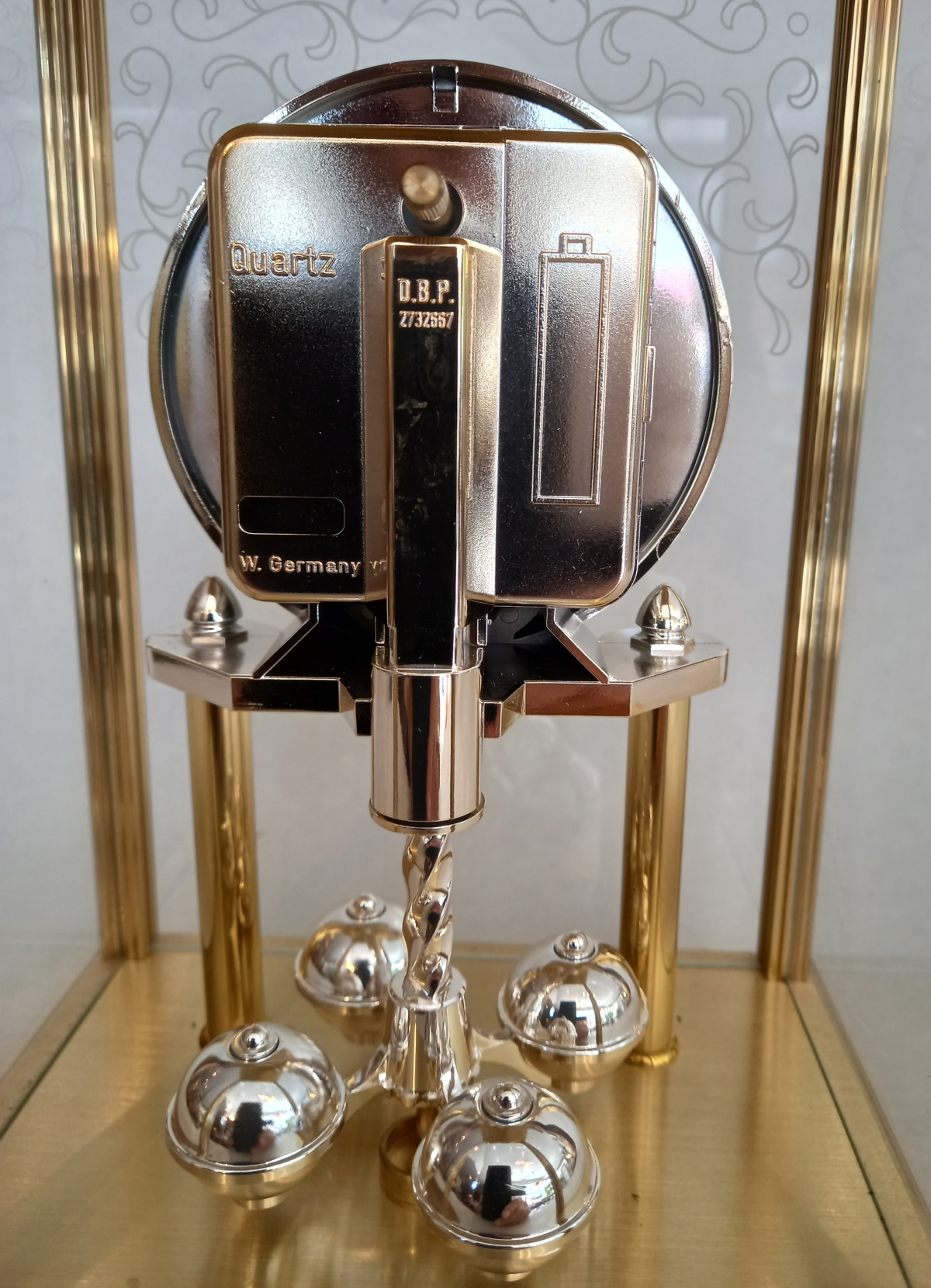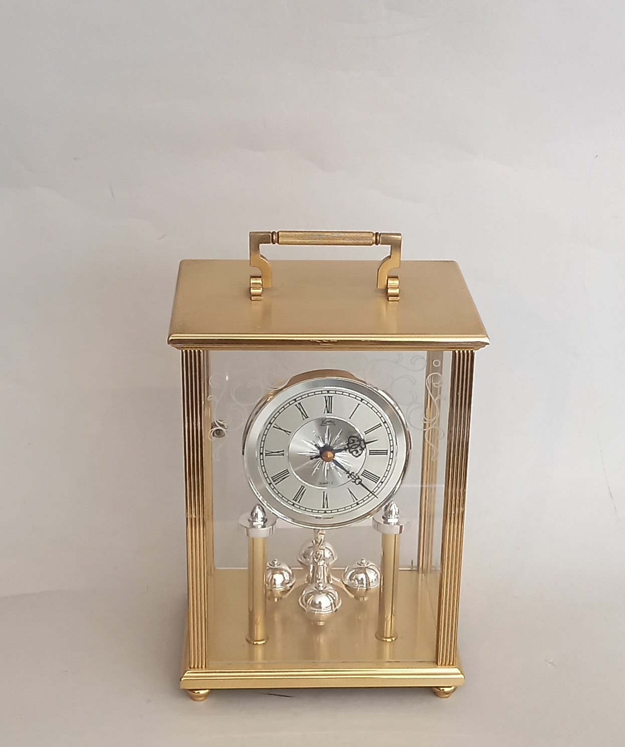 Drehpendeluhr / Kaminuhr mit Messinggehäuse und Mineralglas, Hersteller Koma,