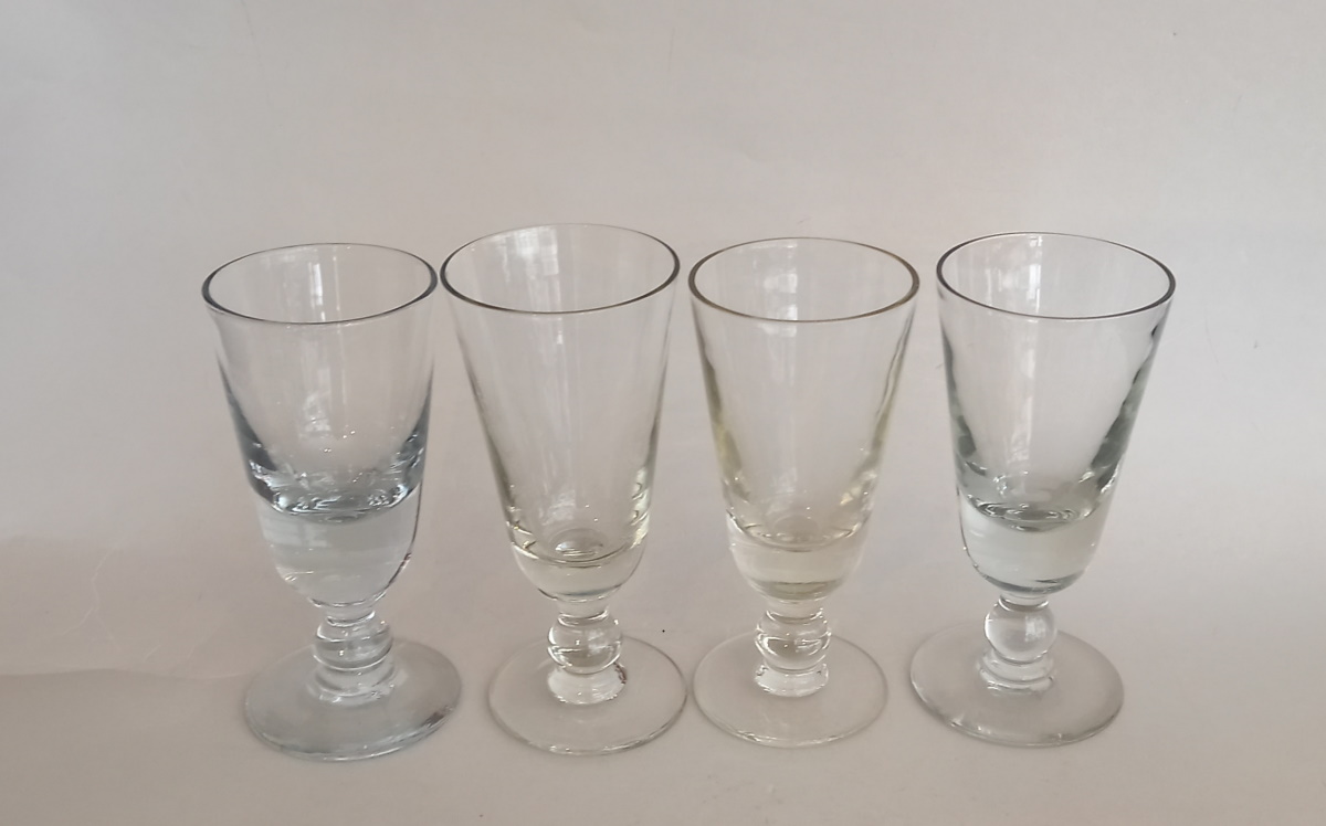Satz von 4 französischen Antike Absinthgläser, Weinglas, Bistro-Glas.