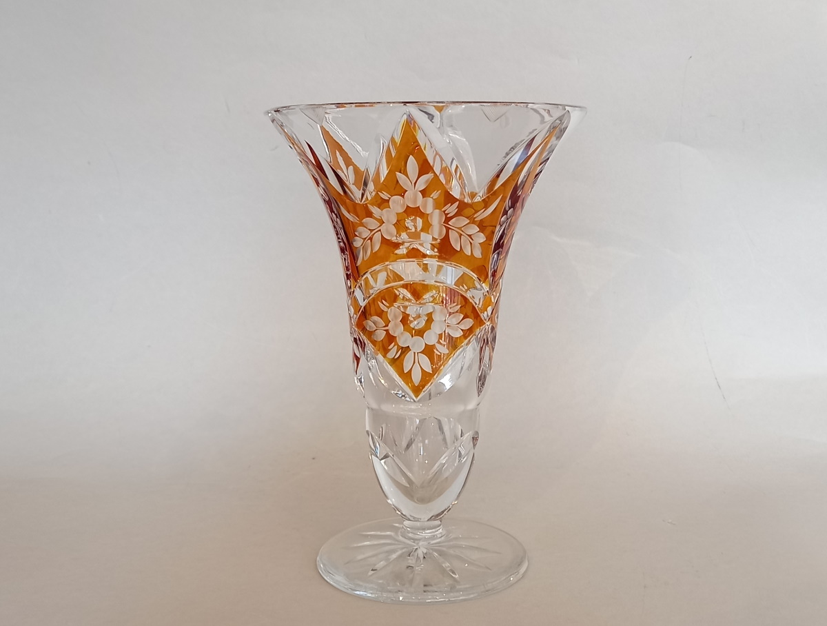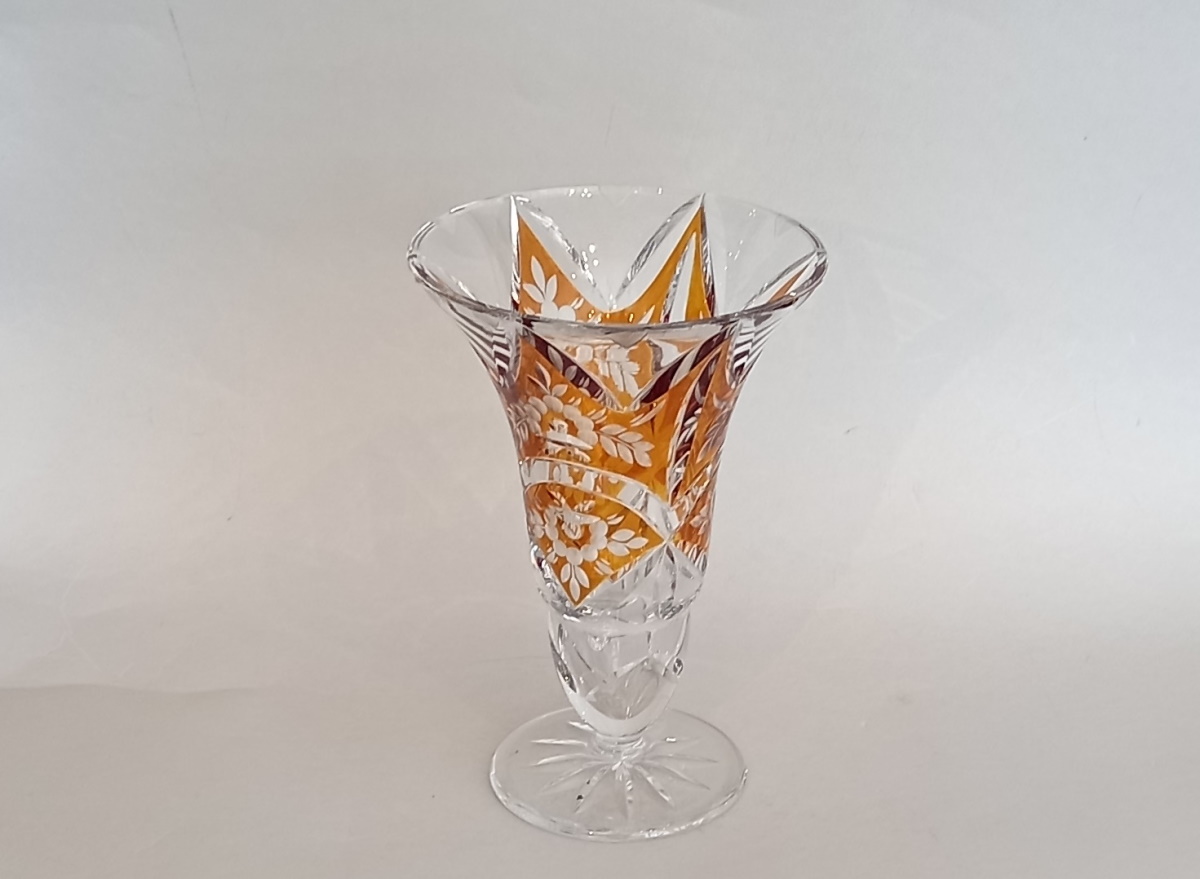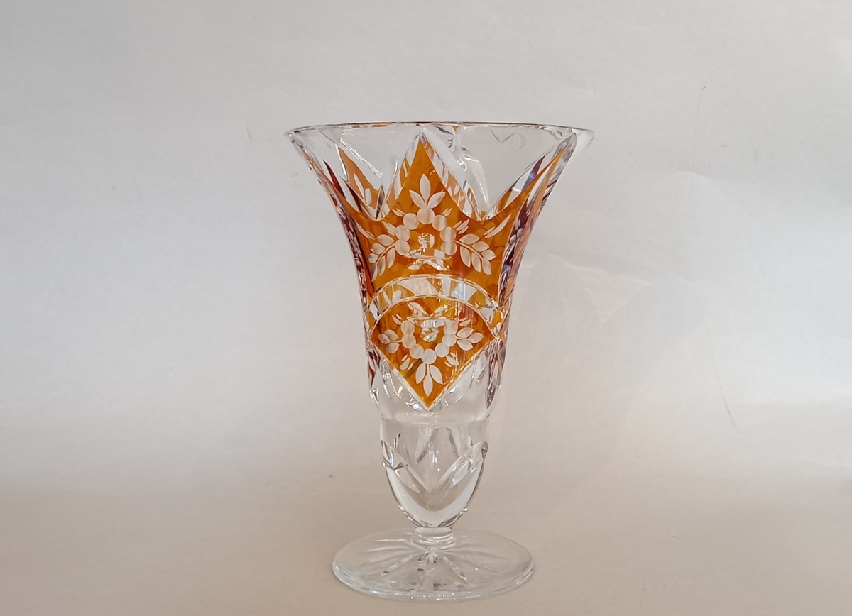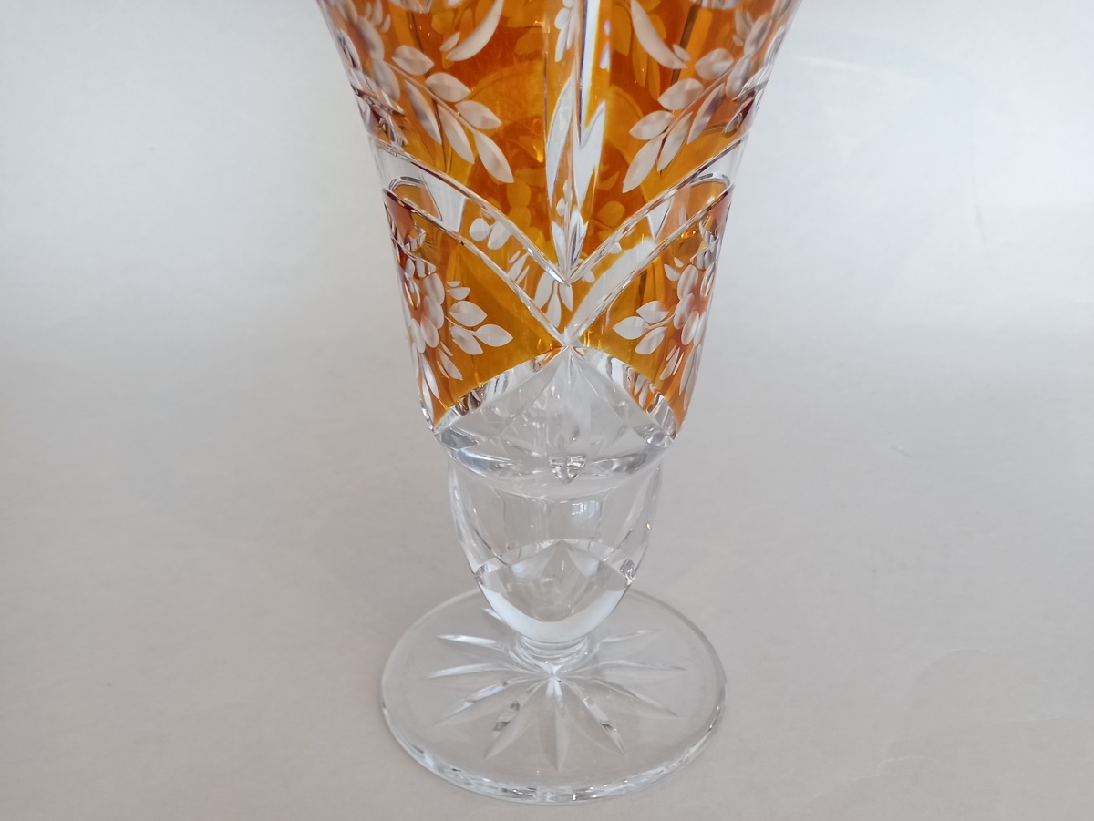Art Deco Kristallglas Vase, Bernstein Glasur, Gräfliche Josephinenhütte.