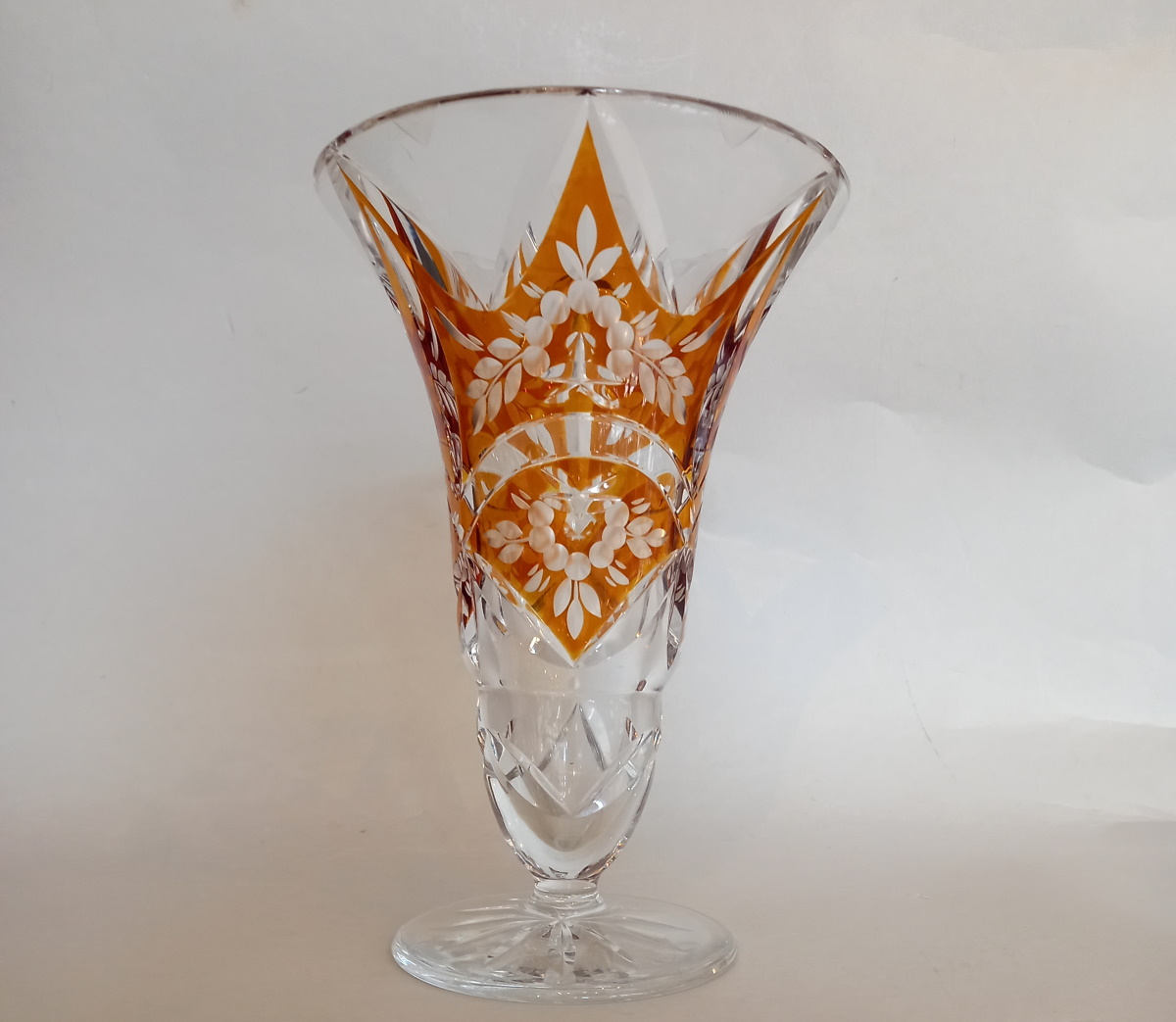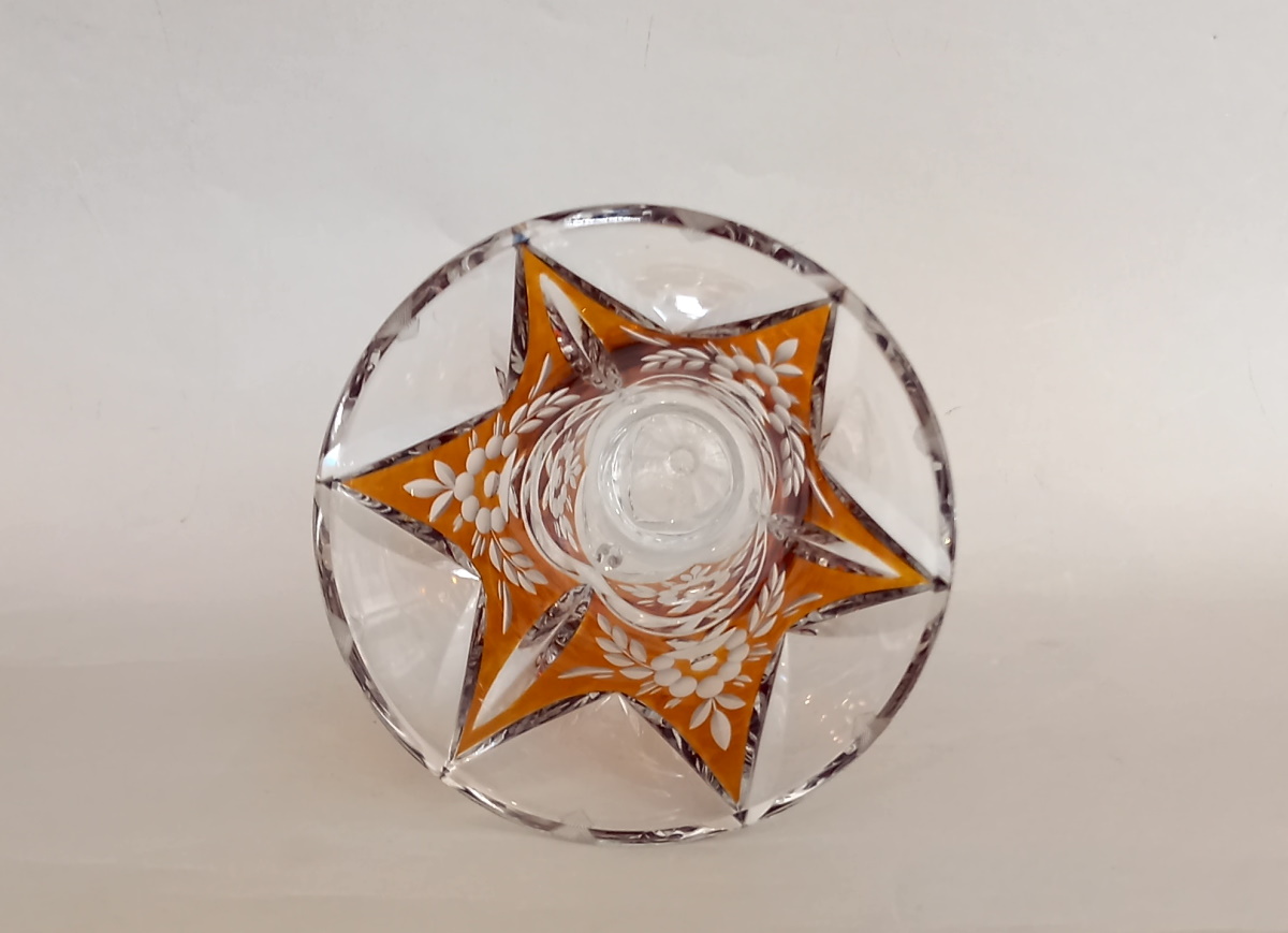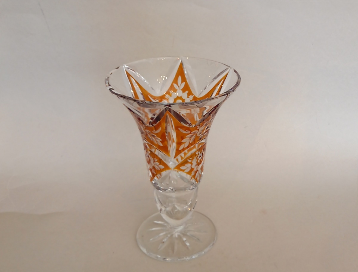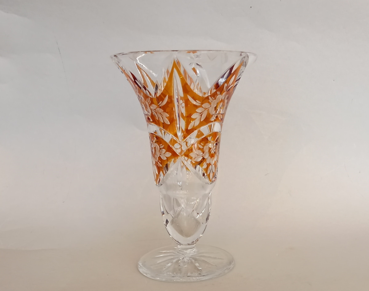 Art Deco Kristallglas Vase, Bernstein Glasur, Gräfliche Josephinenhütte.