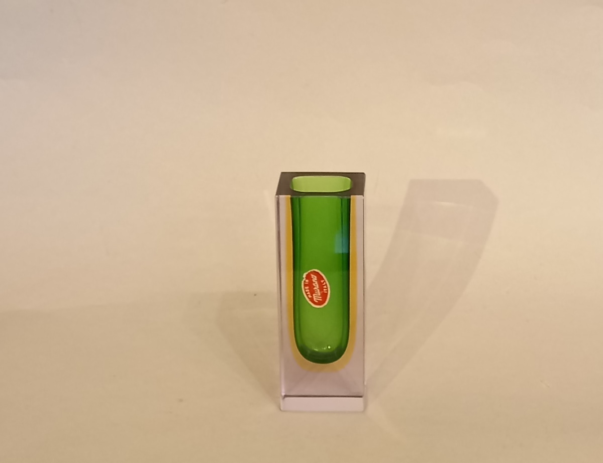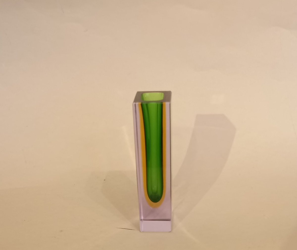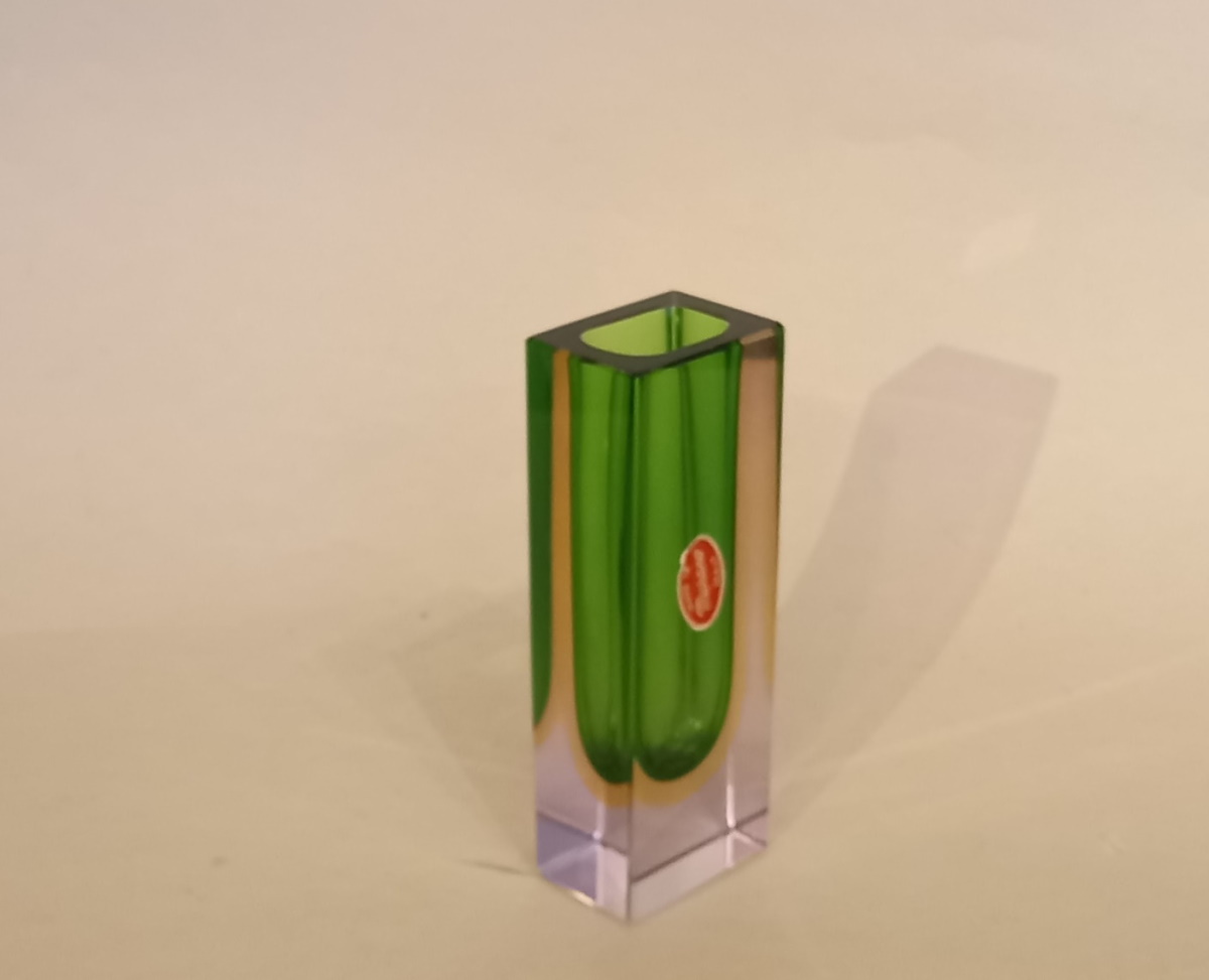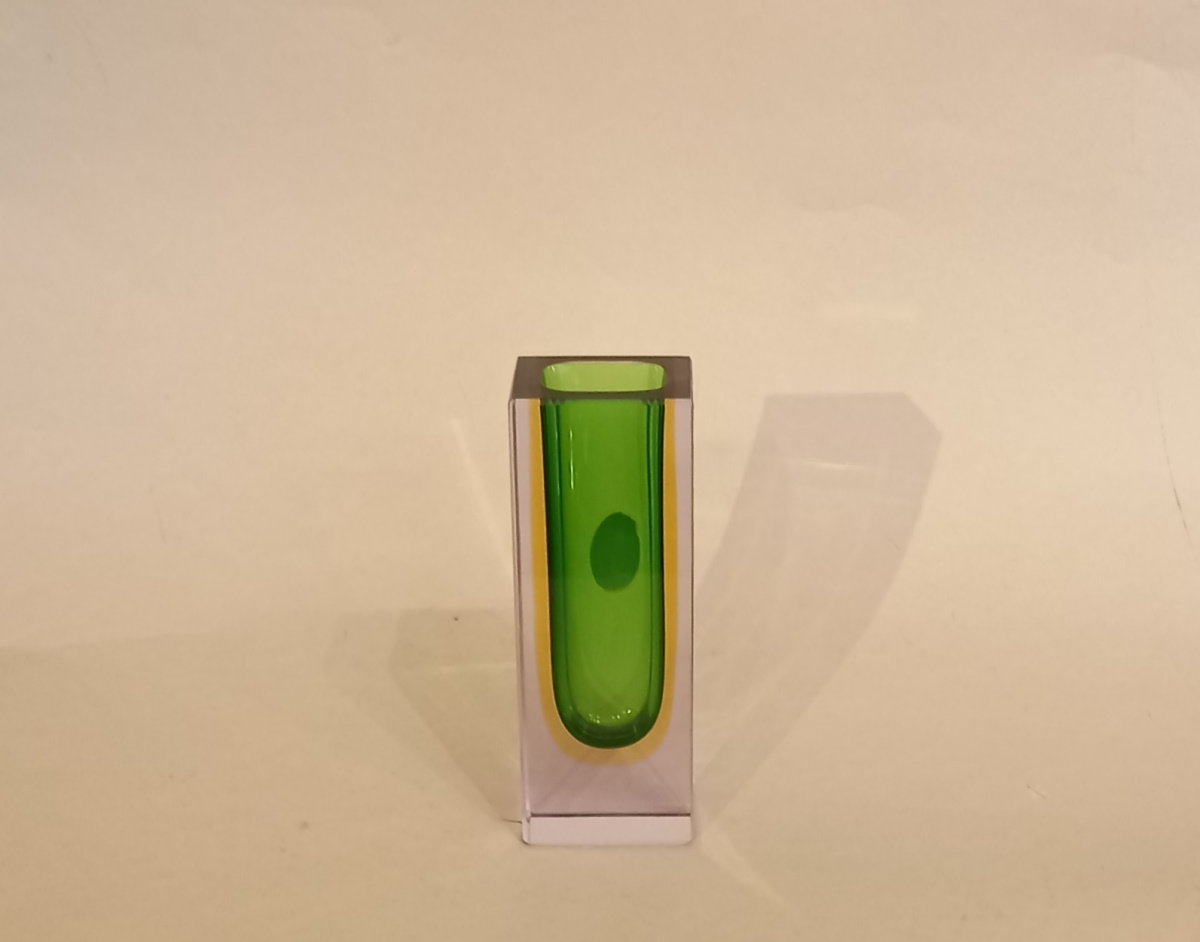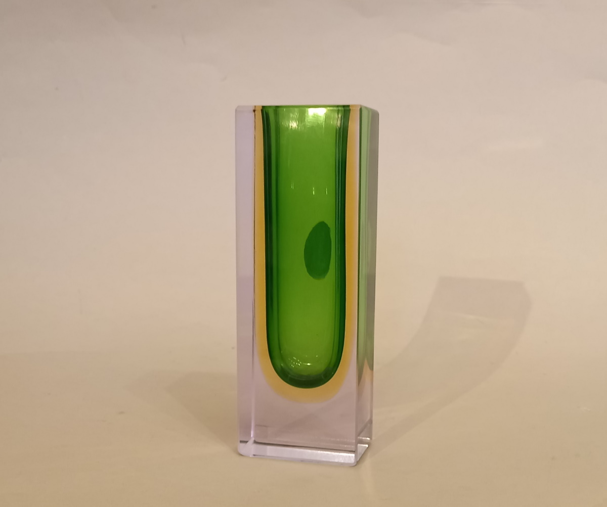 3 farbige Murano Sommerso Blockvase in smaragdgrün, Bernstein und Klarglas