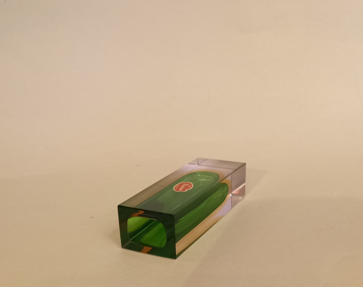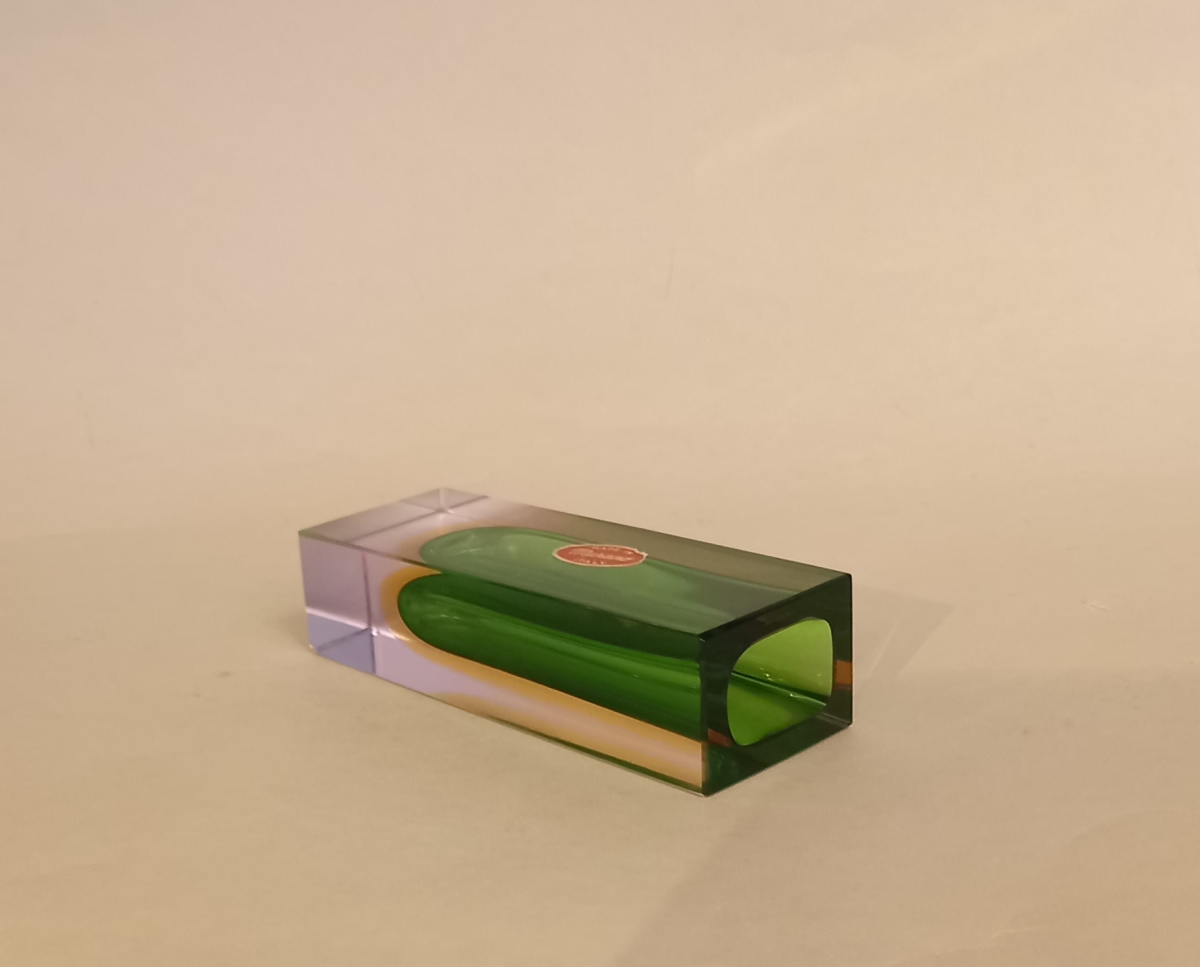 von Flavio Poli. Diese Blockvase hat eine smaragdgrün Innenseite,